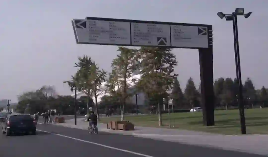 这是我们学校的一个信息牌。有一天学生说,高老师,这是一个反人类的设计。我说哪里呀?他说高老师,你知道这个信息牌有多高吗?6.75米高,你知道我有多高吗?1.7米,我看不清楚它。他说他们还做了一个实验,开着车去经过这个路牌,根本看不到它。