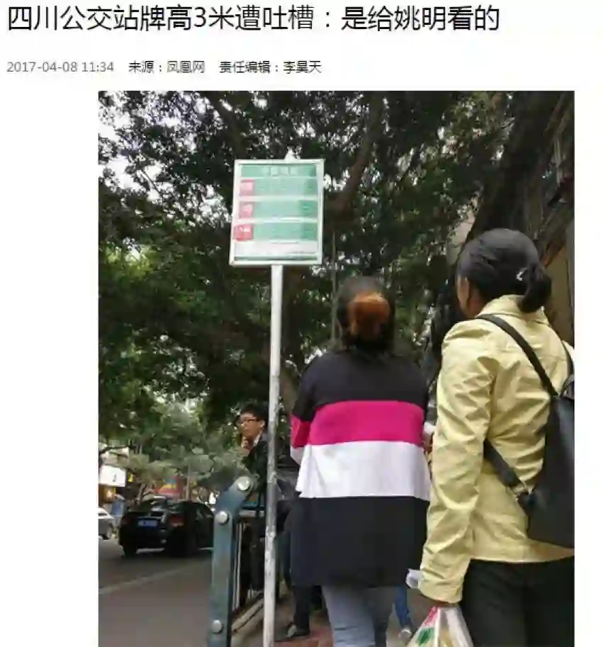 四川一个公交站牌3米高,实质上它有3.5米高,说是给姚明看的。