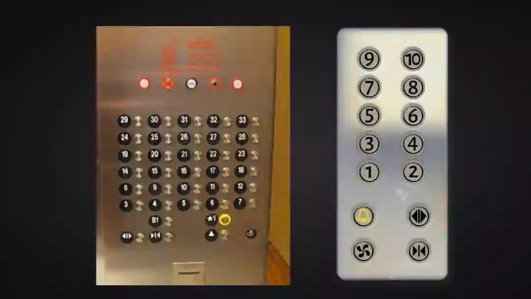 类似这样的电梯按键我们经常会遇到,也经常会被搞晕,有时候要好一会才找的到想去的楼层按键。为什么呢?因为电梯的按键布局出了一些问题。比如说我们看这两款。