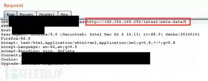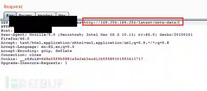 这样来看,我已经可以绕过缓存服务来实现SSRF攻击了,那么,按照AWS的实例元数据机制,我们来看看它能不能读取后端应用服务器中的AWS密码凭据。为此,我们让后端应用服务器发起针对以下AWS实例的请求: