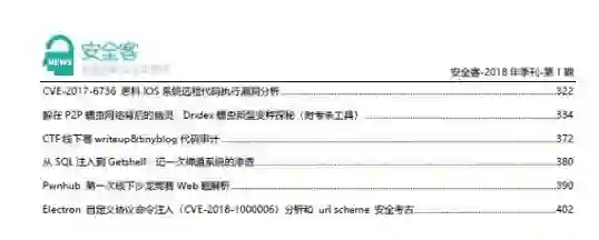 2017年年初,安全客的第一版电子年刊正式出版,一经发布立刻在安全圈内掀起一番读书热潮。今天安全客2018年第一季度季刊正式和大家见面,截至本次已经发布了6版,并且在上一季度中,安全客季刊创下累积370000+的下载量,这是安全客一直坚守质量为本、干货为首的成果凝集,也是安全客用户和白帽伙伴对季刊品质的认可,我们在此次季刊中,也将秉承严格把控质量的原则,为大家呈现最优质、最热门的技术分享内容。