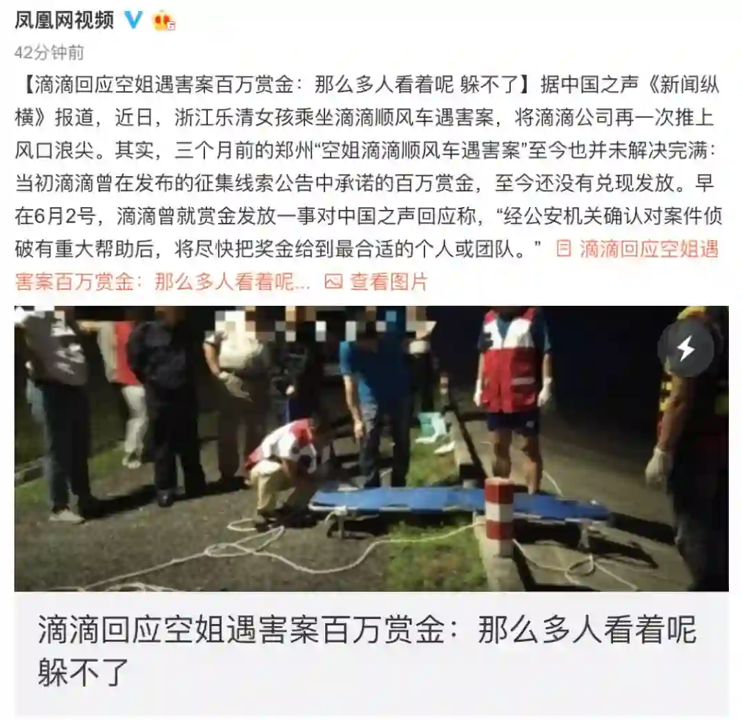 滴滴回应空姐遇害案百万赏金 | 微博@凤凰网视频