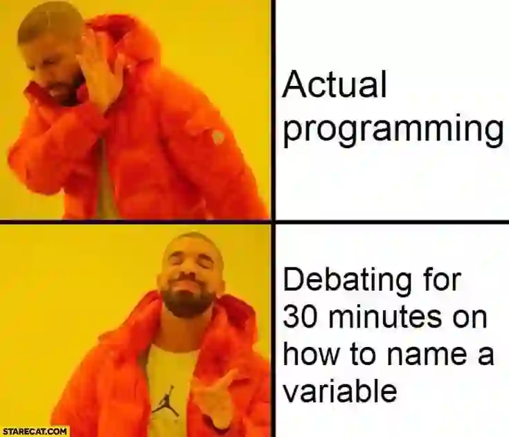 配图文字:(Drake是如何做程序员的:不喜欢真的编程,但是完全可以花30分钟和别人争论这个变量要起什么名字)