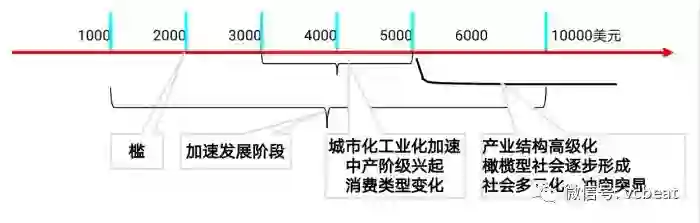 沿着人均GDP的变迁轨迹,每一个阶段都出现相应的经济现象和社会现象,产业的机会和风险,尽在其中。
