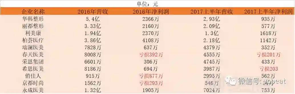 新三板医美盈利情况,数据来源于年报,伊美尔已终止挂牌