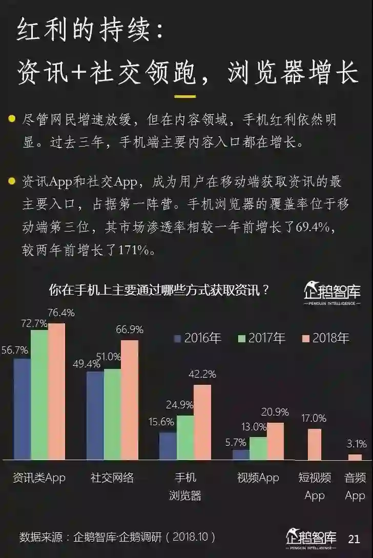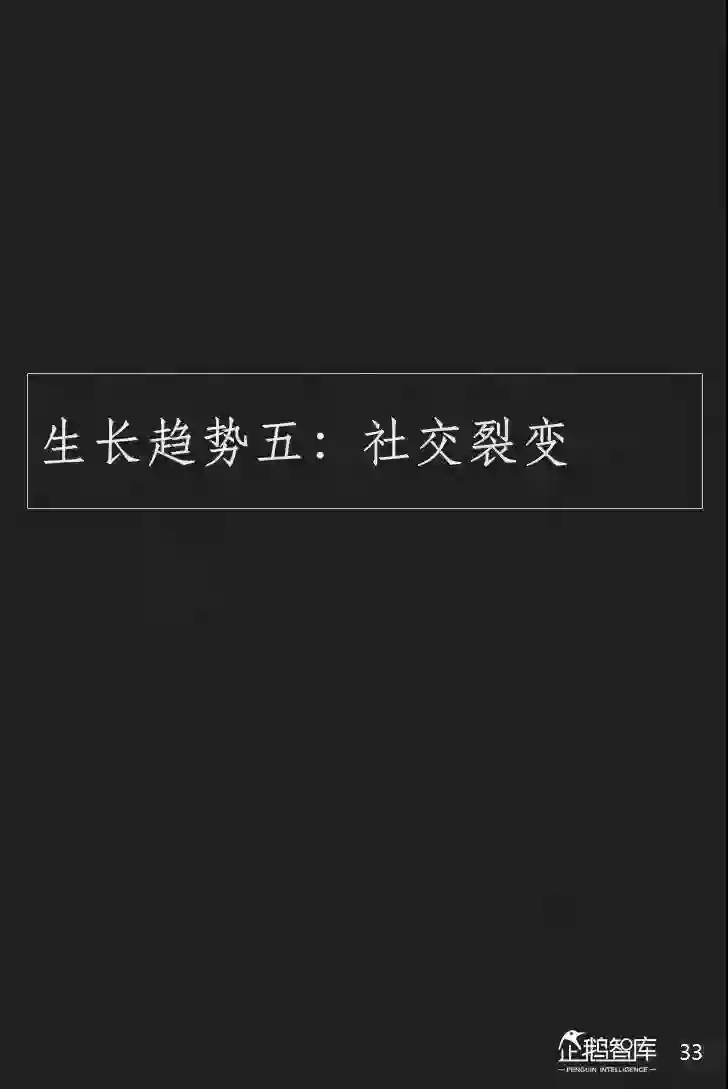 生长趋势五:社交裂变。社交的资讯渠道价值已经逼近资讯App,位居移动端次席。