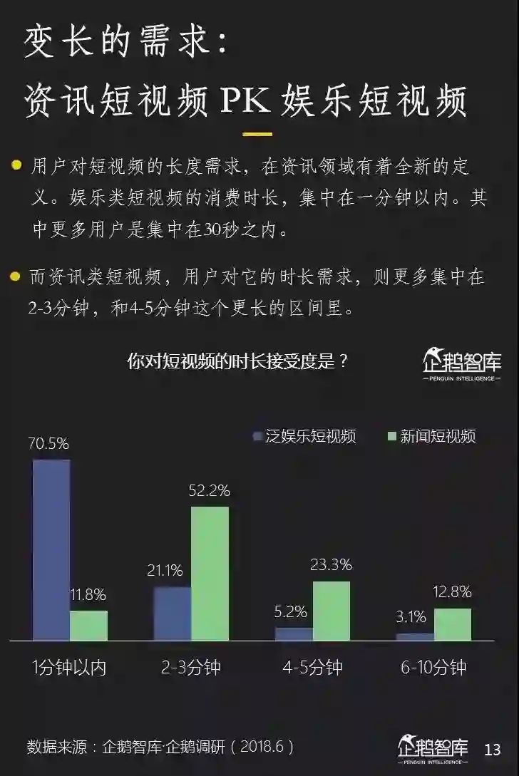 生长趋势二:重定义“短视频”。用户对短视频时长接受度不断扩大,和对流量敏感度也不断减弱。
