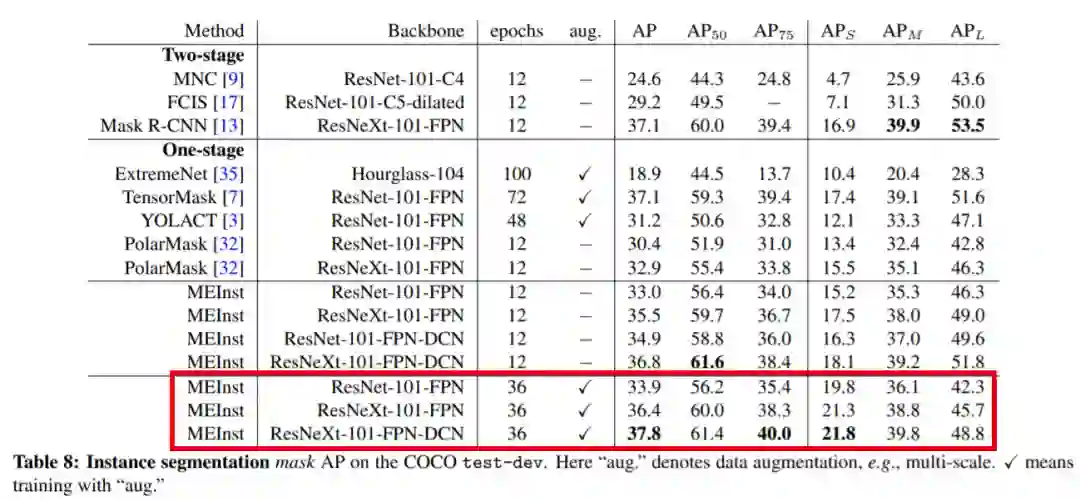 注:性能优于PolarMask、YOLACT和TensorMask等网络