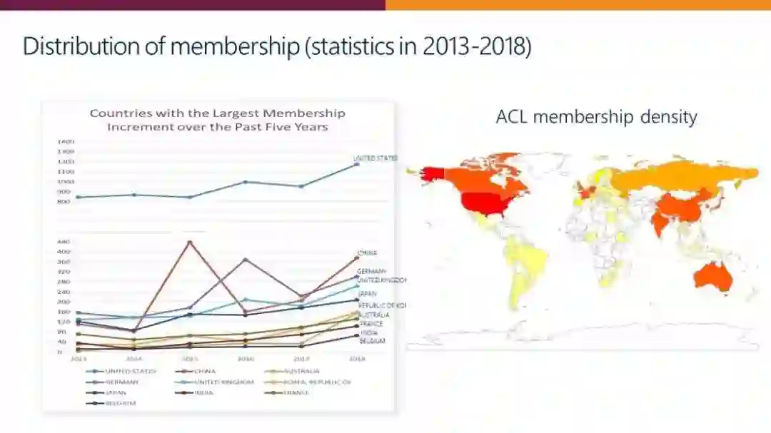 ACL 大会先后在亚洲举办过七次,这极大地促进了促进亚洲 ACL 会员的增长,AACL 也应运而生。成立于2018年的 AACL 服务亚太地区57个国家和地区的 ACL 会员,明年计划举行首届 AACL 会议。AACL 的成立进一步推动了亚洲 NLP 的发展和 ACL 成员的增长。