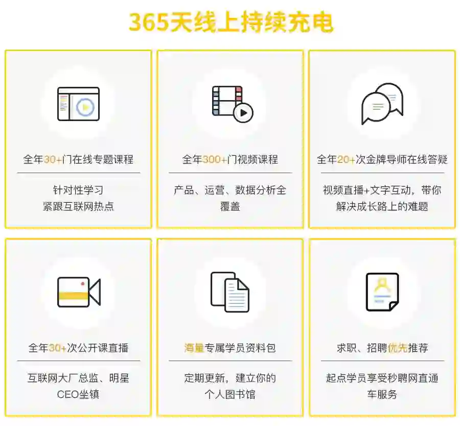 起点学院现已有 10000+ 来自知名企业/学校的精英学员,为你打造了一个高端、精准、专业的人脉圈。参加课程后你将和他们一起交流学习心得,探讨工作方法,共享资源。