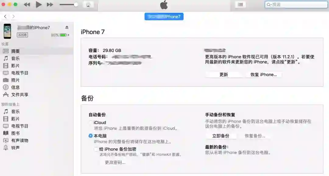 首推苹果官方软件 iTunes 连接电脑进行备份,在电脑端/ Mac 端下载最新版本 iTunes
