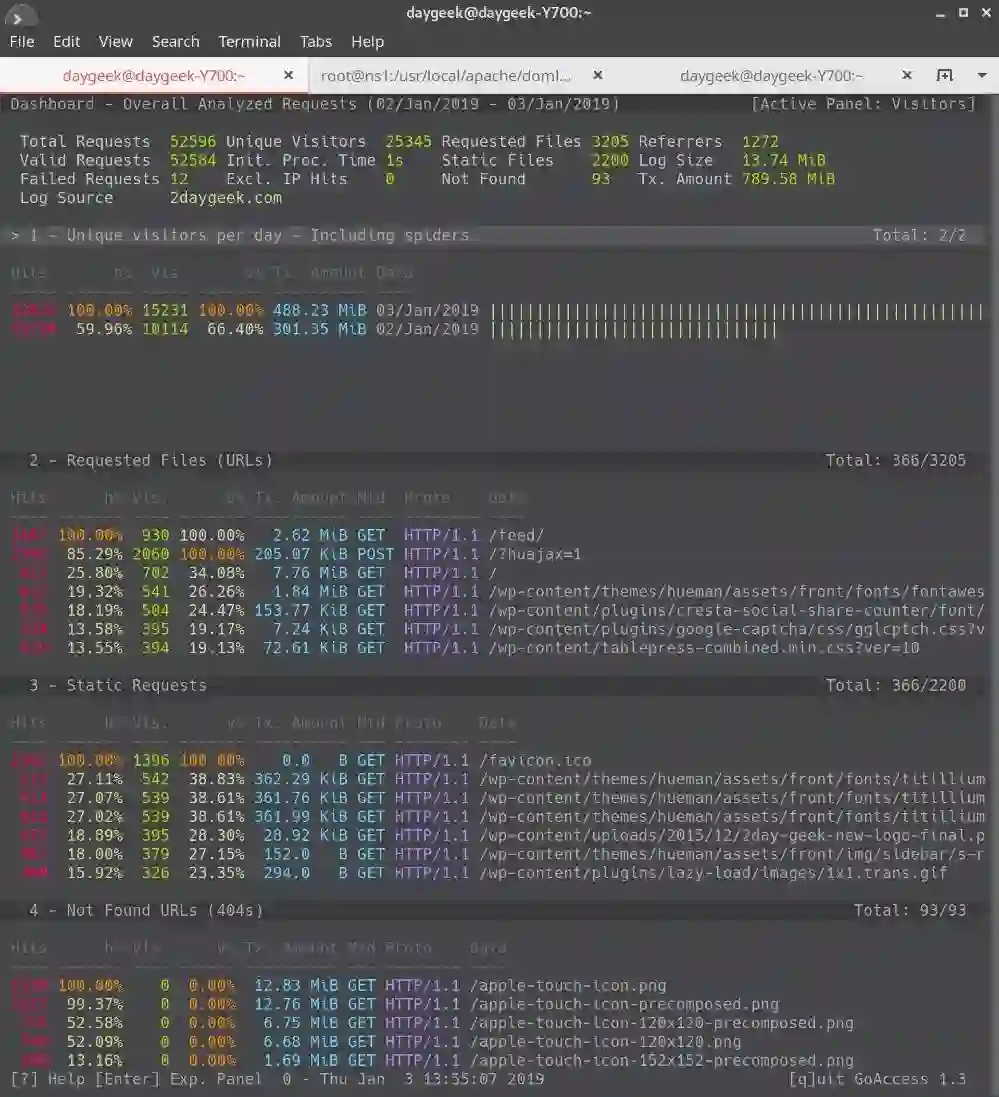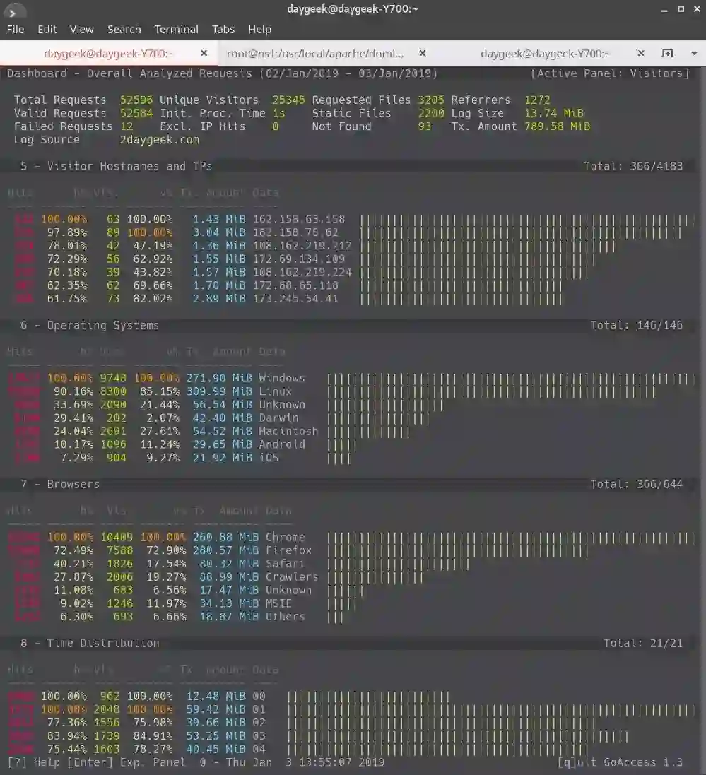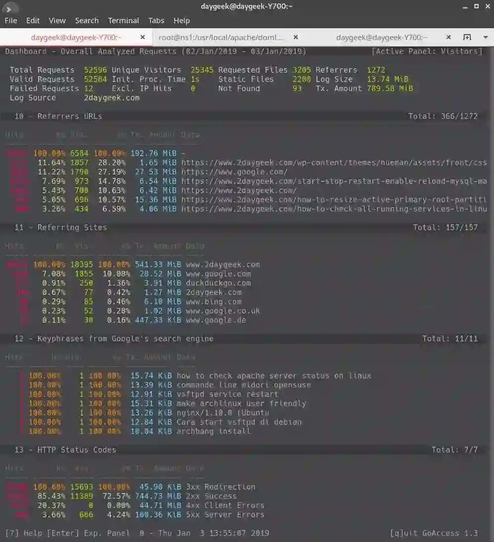 # goaccess /var/log/apache/2daygeek_access.log