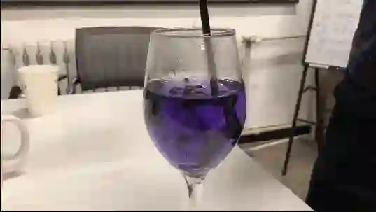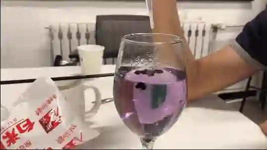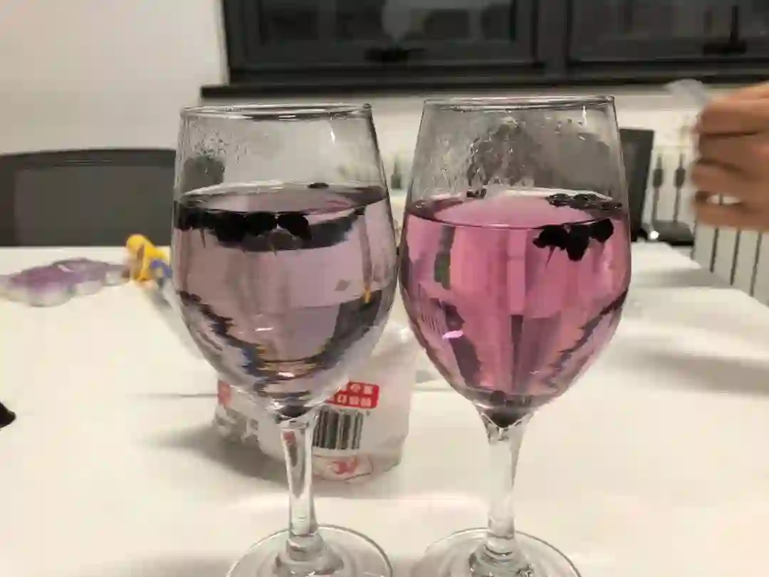 杯中又剩下了晶莹剔透的紫色黑枸杞茶