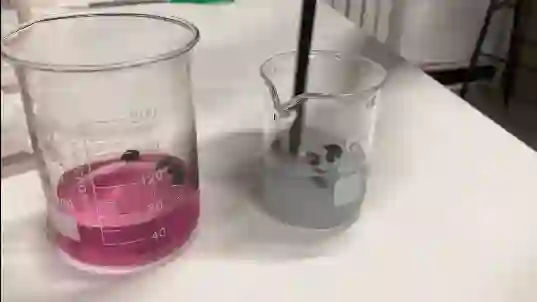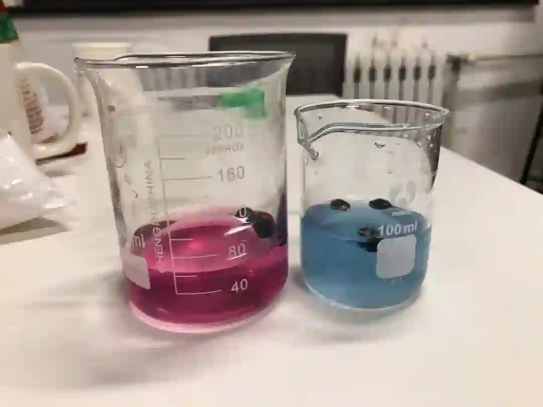 实验器材:黑枸杞,玻璃杯2个,烧杯,醋,小苏打,滴管,吸管,所标杯