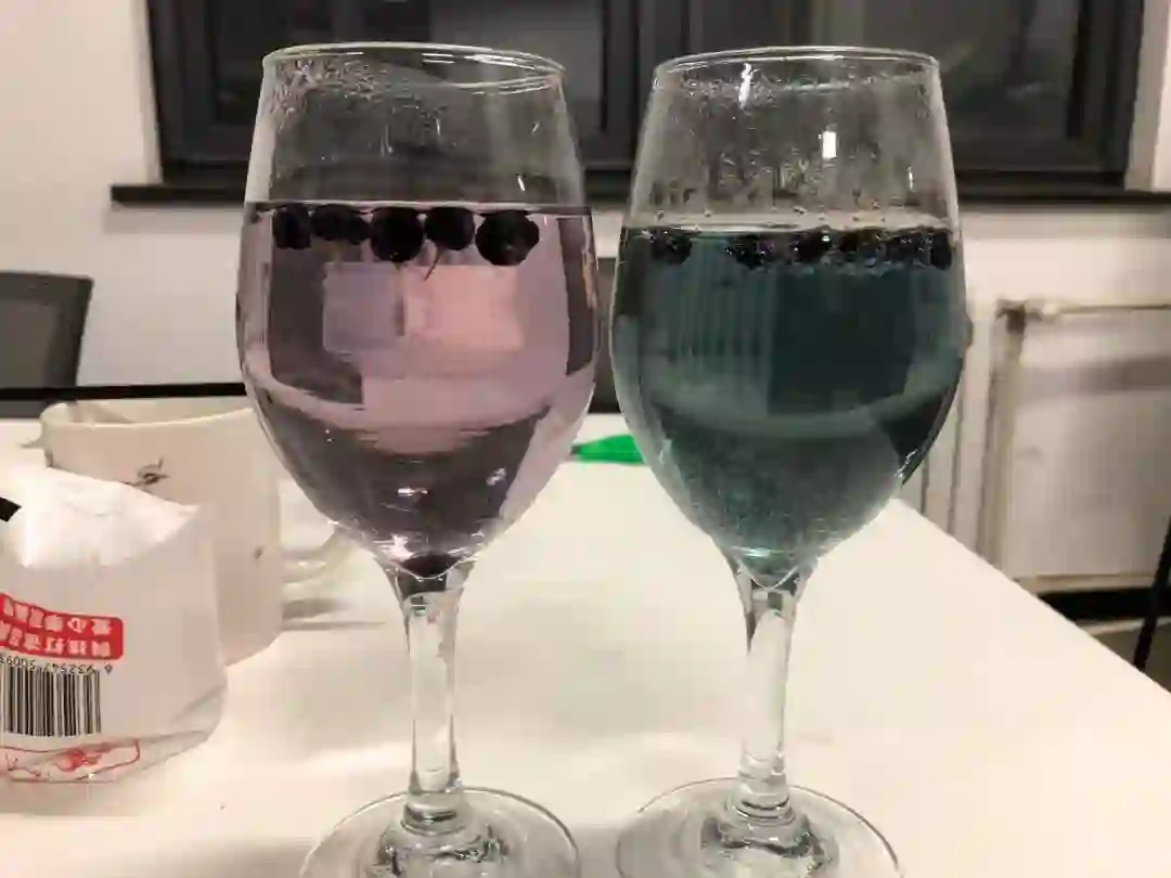 我们再次对比加过小苏打的黑枸杞茶(右)