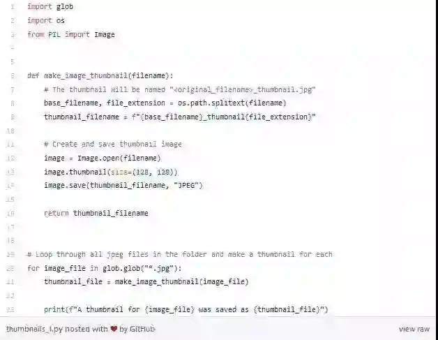 下面的短程序中我们使用Python自带的glob 函数获取一个包含文件夹中所有图片文件的列表,并用Pillow图片处理库获取每张图片的128像素缩略图。
