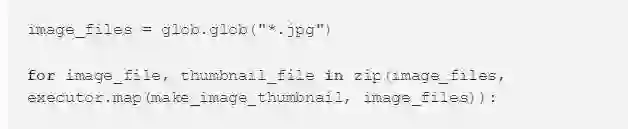 我们也可以得到每次调用辅助函数的结果。executor.map()函数以输入数据顺序返回结果。 Python的zip()函数可以一步获取原始文件名以及相应结果。