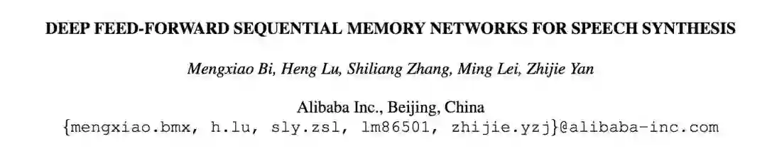 论文标题:Deep Feed-Forward Sequential Memory Network for Speech Synthesis