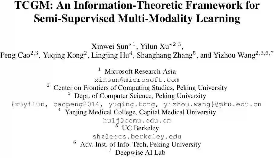 本文是计算机视觉领域顶级会议 ECCV 2020 入选 Oral 论文《基于信息论的半监督多模态学习框架 (TCGM: An Information-Theoretic Framework for Semi-Supervised Multi-Modality Learning)》的解读。