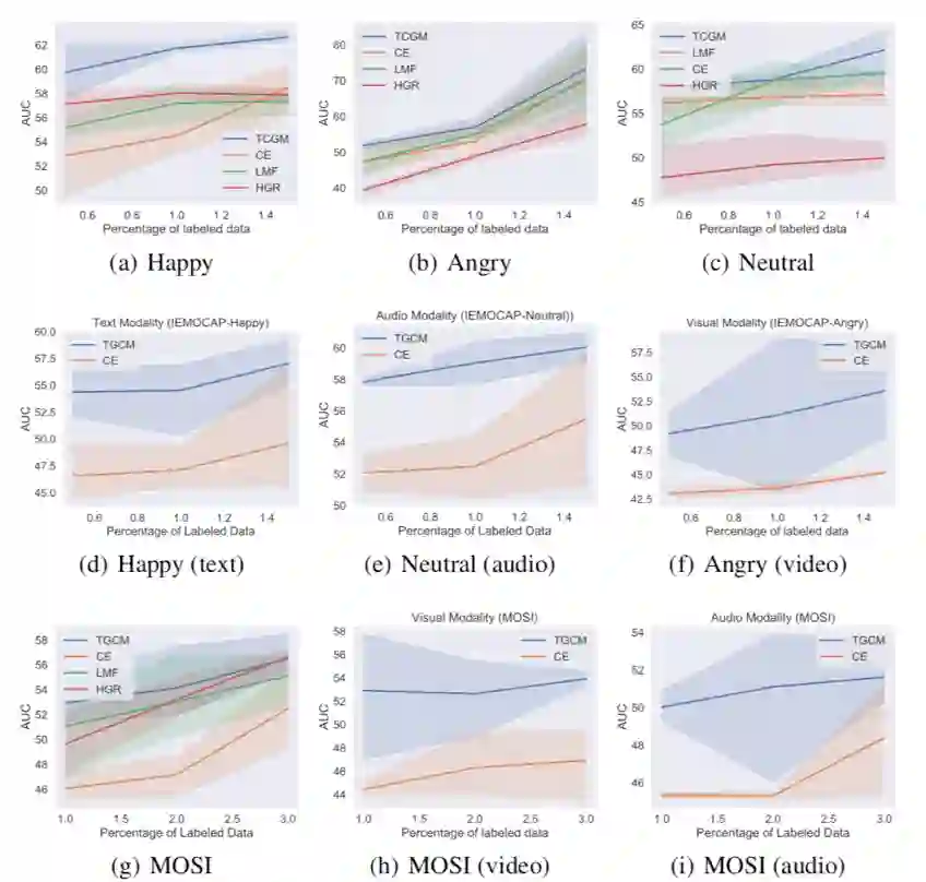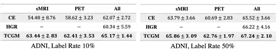 我们的方法 TCGM(Total Correlation Gain Maximization)在不同的标注比例下的半监督+多模态学习中都取得较好效果。在训练中,不仅单个模态的分类器表现得到提升,在利用所有分类器来预测标注的情况下,TCGM 也好于其他方法。