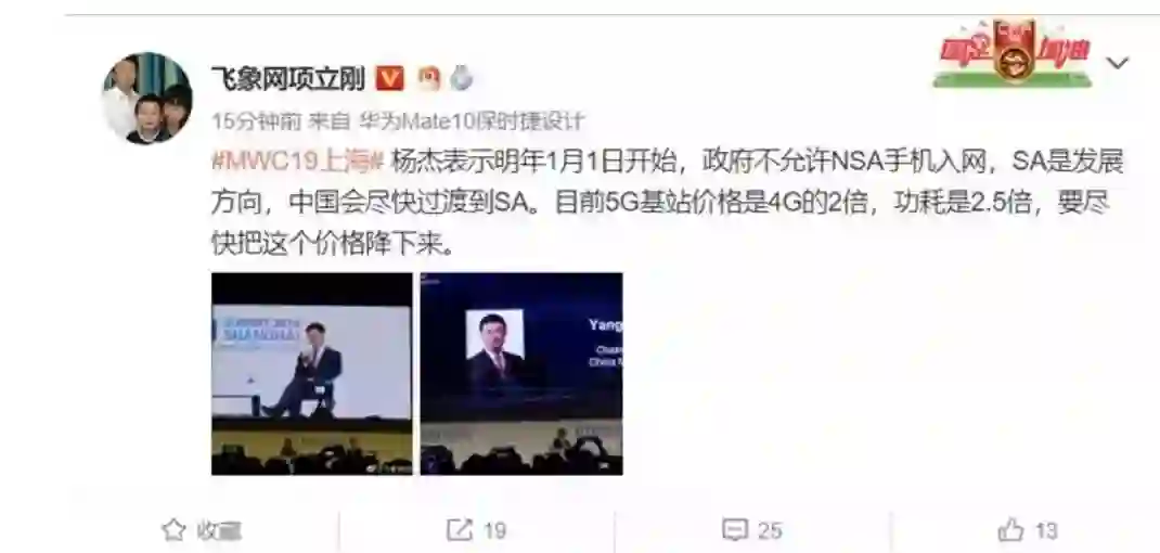 “要想让5G发挥作用,SA一定是目标架构网络,所以我们希望SA越早越好。中国政府也很明确,明年1月1日开始,5G终端必须具备SA的模式。所以明年1月1日开始NSA的手机就不可以入网了。所以我们希望在技术发展方面能够进一步加快技术的成熟。”