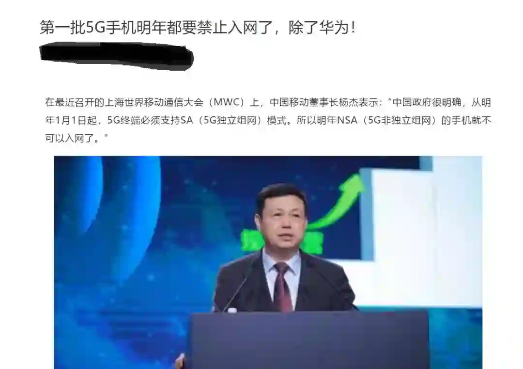 中国移动董事长杨杰的这句话完整的意思是,政府不允许只支持NSA的5G手机入网,但并不是说现网就不支持NSA,这是两个概念。