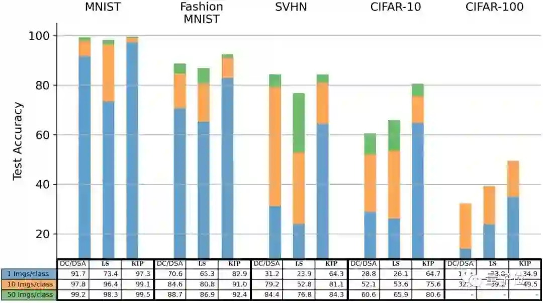 在CIFAR-10分类任务中,LS也优于先前的方法,KIP甚至可以达到翻倍的效果。