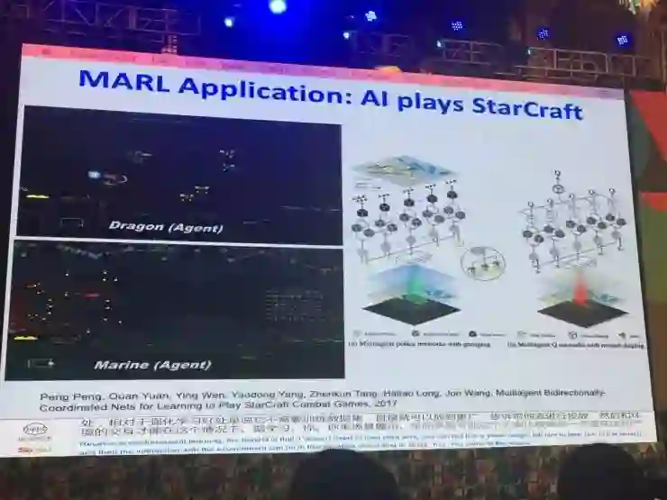 在既要竞争,又要合作的场景下,AI智体处理起来就比较困难。他们和阿里合作开发了一套AI打星际争霸的系统,目的就是希望能找到计算量又小,多智体之间又能协同配合的方式。