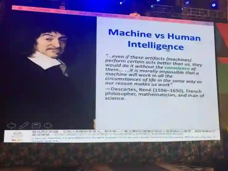 大家研究现在的这个趋势,如果和人的智慧来比的话,其实差的还是非常远的。我非常同意笛卡儿说的一句话:“机器和人的能力差别非常大,其中有一个最重要的问题是意识(Conscience)......”我们现在还不是很清楚,我跟认知学家进行交流,认知学家经常会说,在他们的心里面有一个梦想,就想研究认知,研究意识,但是他又没法去研究,因为他没有一个很好的手段,连意识是什么东西大家都定义得不是很清楚。虽然我们在人工智能方面,包括强化学习这一块,做了很多的突破,但是离真正意义上的人工智能还是很远的,我们还要不断地进行努力。