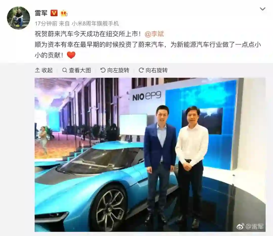 在二人的交谈中,最先想到的是传统势力,肯定会有一大波人造电动车,还有雷军会不会造车也是一个很重要的可能。小米那时候也是如日中天,要是他做了怎么办,但是后来小米又有很多波动,雷军也没做车。李斌就去跟雷军进行了沟通,最后雷军也成了蔚来挺早的投资人。