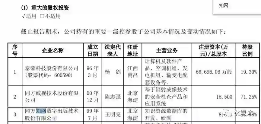 首先,这家上市公司所投资的与“知网”相关的公司一共有5家,分别是:同方知网数字出版技术股份有限公司、山西同方知网数字出版技术有限公司、山西同方知网印刷有限公司、同方知网(北京)技术有限公司、同方知网(美国)技术有限公司。