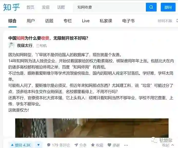 在知乎上随便一搜,可以看到很多用户对知网的质疑。关于“中国知网为什么要收费,无限开放不好吗?”这样一个问题,有网友回答直指本质:“如果是花政府的钱搞的,那所有国人都应该免费使用。如果就是一个企业,那凭什么把数据给它,他应该花钱买啊。”