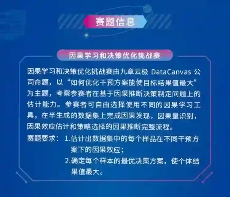 九章云极 DataCanvas 公司「因果学习和决策优化挑战赛」邀你来战