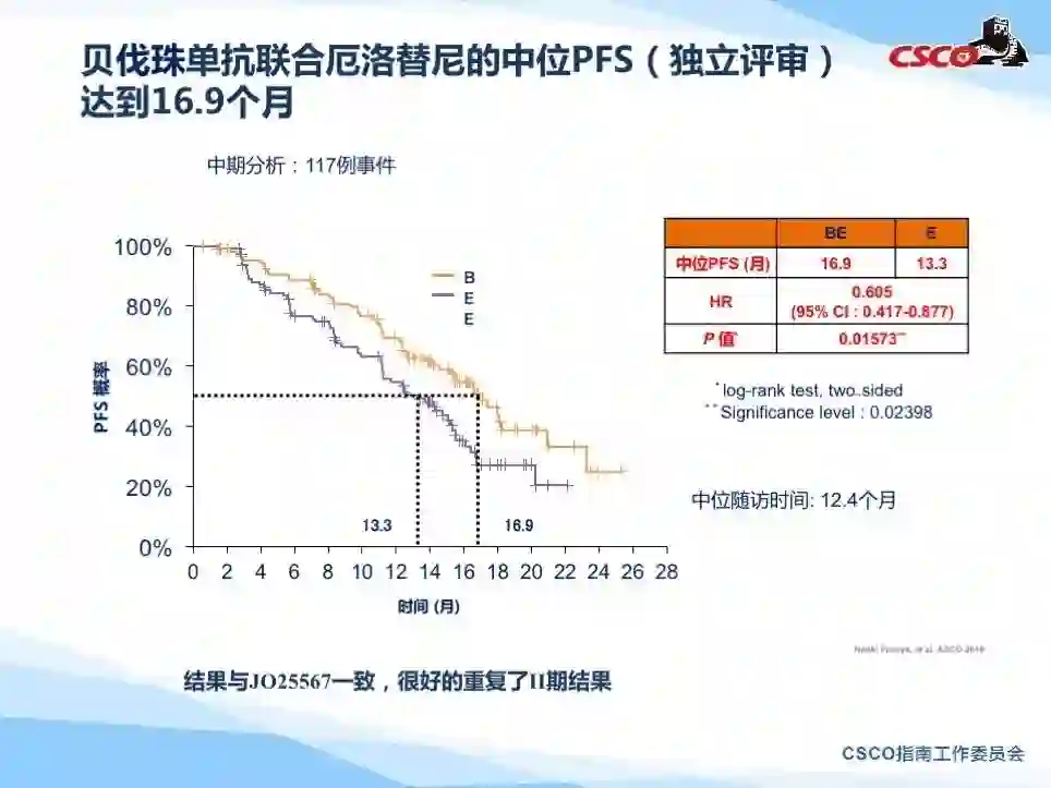 此外,国外有做过贝伐珠单抗联合培美曲塞+卡铂与贝伐珠单抗联合紫杉醇+卡铂的Ⅲ期联合研究,结果显示,贝伐珠单抗联合培美曲塞+卡铂疗效数据要更好一点,同时安全性可以接受。