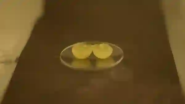 为了等离子体共振腔的形成与葡萄的其他内部成分和脉络无关,研究人员用纯净水做出了两个大小与葡萄相似的水凝胶珠,用氯化钠溶液短暂浸泡后放入微波炉,果然也发生了“爆炸”。