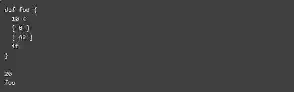 接下来,我们将值0和42输入堆栈:我们将它们包括在括号中以确保它们未被执行就推入堆栈。这是因为它们将分别用于调用if下一行函数的“then”和“else”分支。