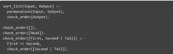 如果您使用像Prolog这样的声明性语言对数字进行排序 ,则应该描述所需的输出:“我需要相同的值列表,但索引中的每个项目 i应小于或等于索引处的项目i + 1”。将以前的C解决方案与此Prolog代码进行比较: