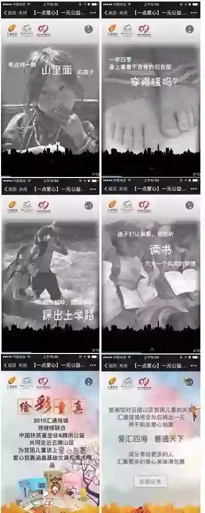 其实公益类的H5,我们见过不少了。一般是这样的: