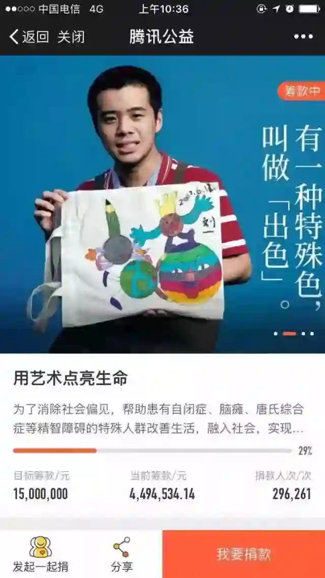 最后,我知道不少人在怼腾讯公益,说他们的画并非出自自闭症之手。吃饱了撑的!能让这么多人产生捐助行为,为慈善增添这么多增量用户,不是很棒的事情吗?