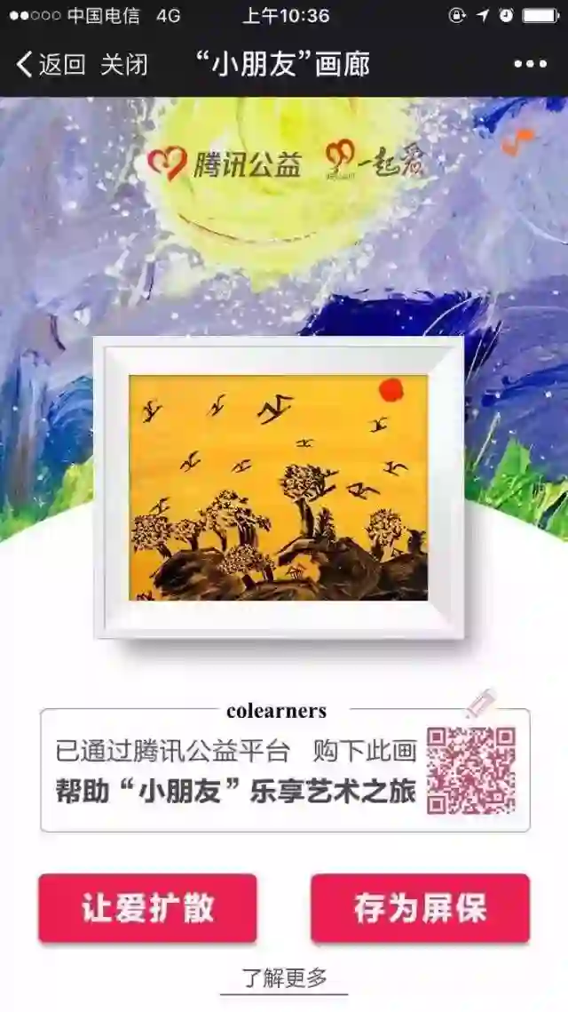 H5刷屏很难,公益刷屏更难,更重要的是,这次分享是有门槛的,要花1元钱买张油画,是「付费分享」。
