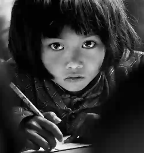 当时摄影师海龙跑了十几个村庄,选中了她,理由就是这双眼镜:清澈,纯净,透露着对读书的渴望。
