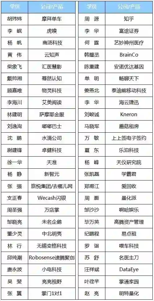 清华-青腾未来科技学堂首期学员名单
