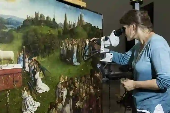 因此,根特祭坛画已经经过了多次的清洁和修复,在一次修复中,工作人员惊奇地发现,画作共有 3 层,重绘面积达到了 70 %,意味着该画经历过两次未被记载的大型修复。