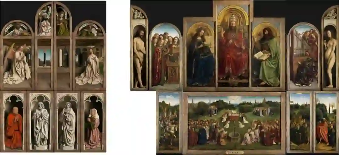 它由 Van Eyck(凡·艾克)兄弟,于 1415 年到 1432 年,历时 18 年完成,是一幅由内外 20 个画板构成一种折叠式巨大画作,完全打开时长 3.5 米,宽 4.7 米。