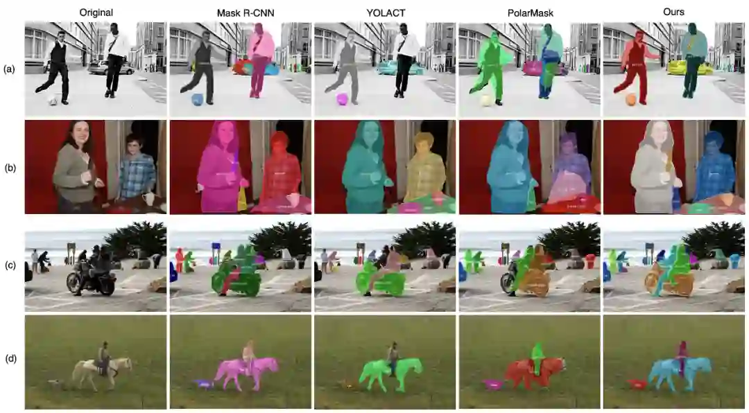 图6. CenterMask与其他方法在COCO 数据集上的可视化对比