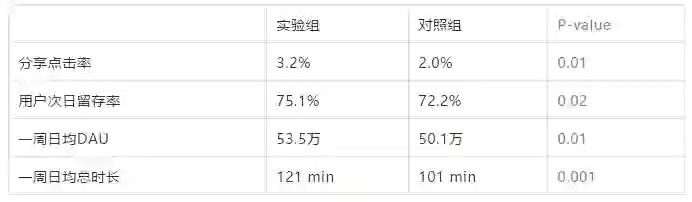 这些都是前期分析数据的关键产出,而「提升分享率能够提升DAU和时长」是一个假设,需要实验验证。