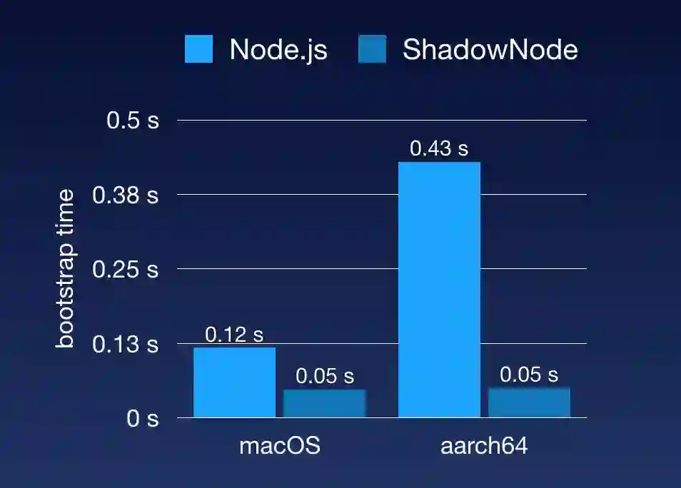 然后是启动时间,对于设备端上的应用来说,往往为了省内存,会把不重要,或不再使用的应用(进程)杀掉,当有需要时,再重新启动,因此这对进程的启动时间,包括 CPU 占用都提出了不小的要求,可以看出 ShadowNode 在这方面的表现也优于 Node.js。