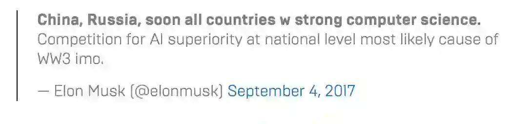 伊隆·马斯克每次更新推特,全世界都屏气凝神。近日,这位特斯拉及 SpaceX 的创始人声称“上升到国家层面的 AI 竞争极有可能引发第三次世界大战”。