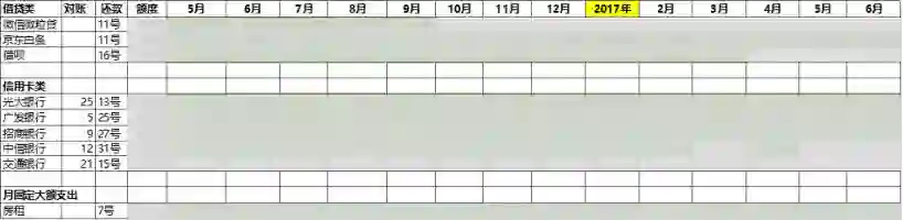 阿桦想了想,这两个账户很重要,目前我在欠款过多的情况下,还是先以还款为首要任务,定个小目标,在第9个月(2017年2月),开始往保值账户存入 xxx 元。在还清欠款后3个月(2017年9月),启动增值账户。
