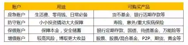 首先是应急账户。准备3-6个月的日常生活费,而3个月内预计会用到的钱也应该纳入应急账户管理。
